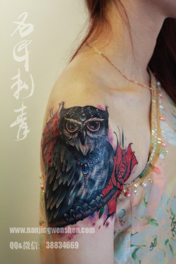 猫头鹰纹身 遮盖纹身 大臂纹身