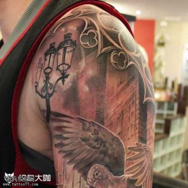 女生肩花纹身_15张女性双肩对称的肩花纹身图案作品图片