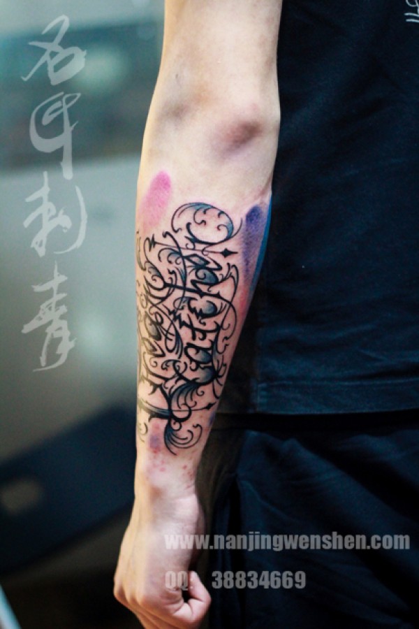 小臂花体字纹身