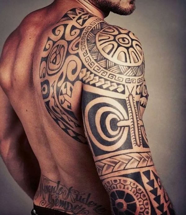 男性背部帅气的部落图腾纹身图案