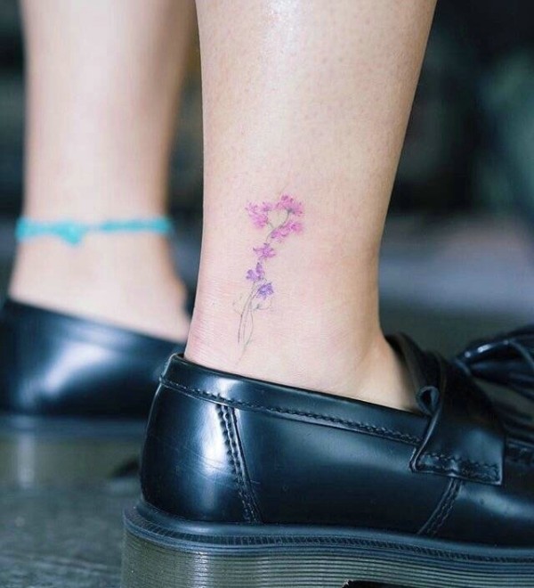 女生脚踝上的小清新花朵纹身图片