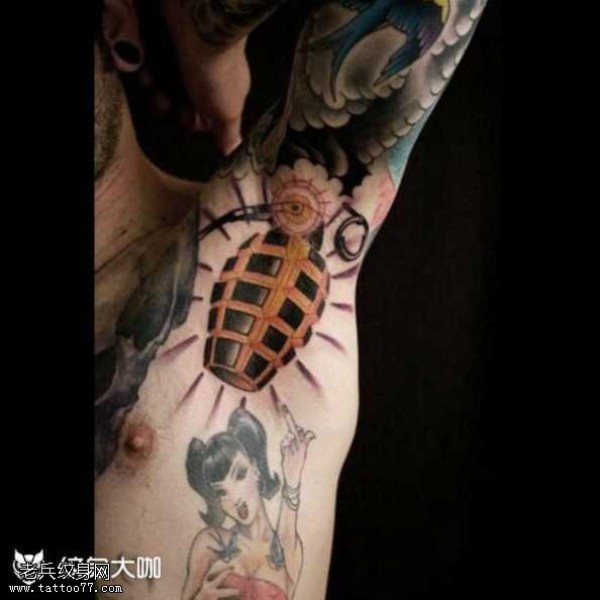 腰部手雷纹身图案