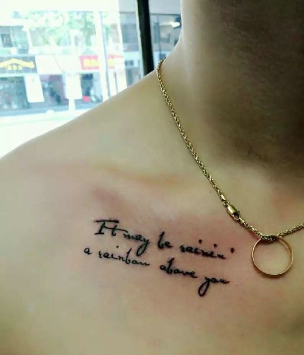 男士锁骨下的简约英文纹身刺青