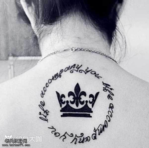 背部英文皇冠图腾纹身图案