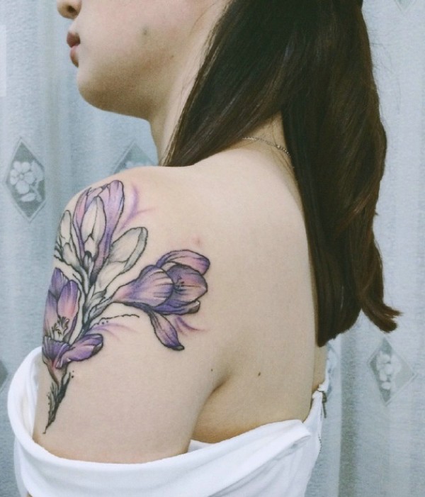 女生肩花纹身_15张女性双肩对称的肩花纹身图案作品图片