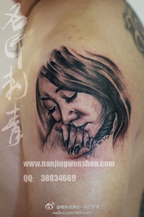 女性肩部肖像刺青_肖像纹身图案大全_纹身图吧