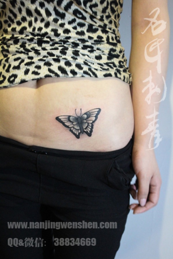 MM胯部腰部蝴蝶纹身,old school蝴蝶纹身