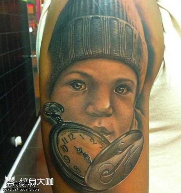 肩部小孩表纹身图案