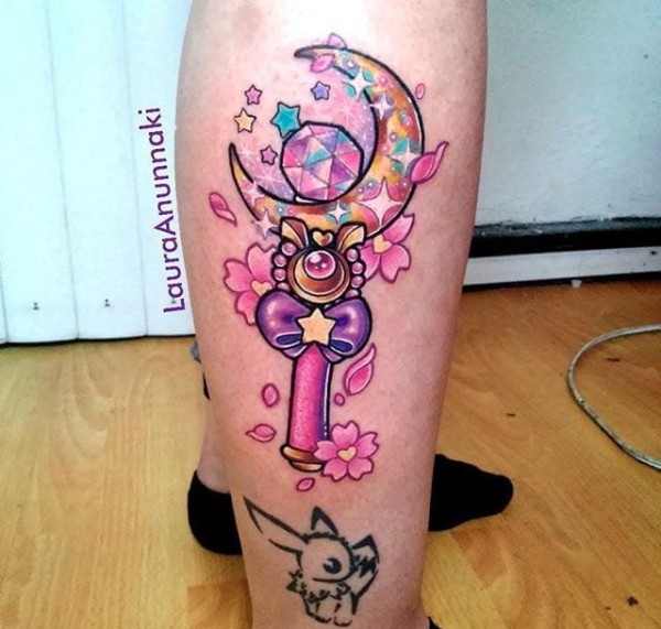 少女心爆棚的粉色魔杖纹身图案来自劳拉那齐