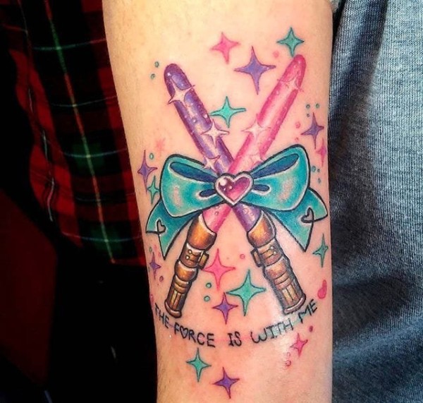 少女心爆棚的粉色魔杖纹身图案来自劳拉那齐