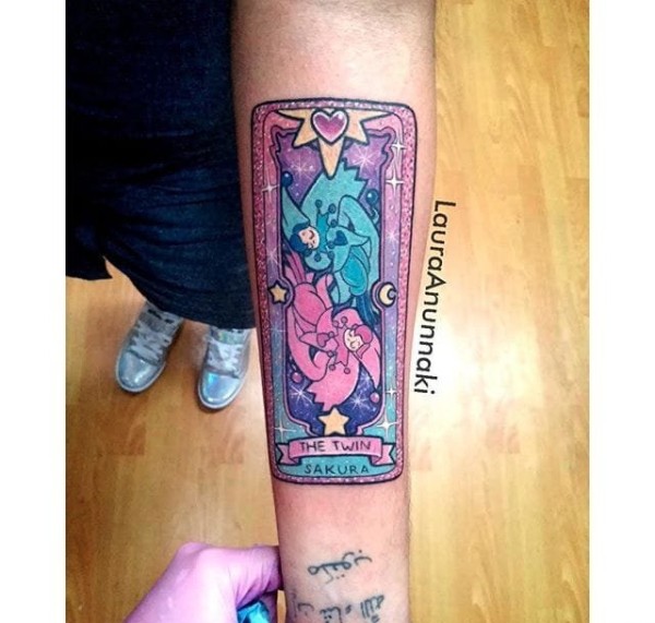 少女心爆棚的粉色魔杖纹身图案来自劳拉那齐