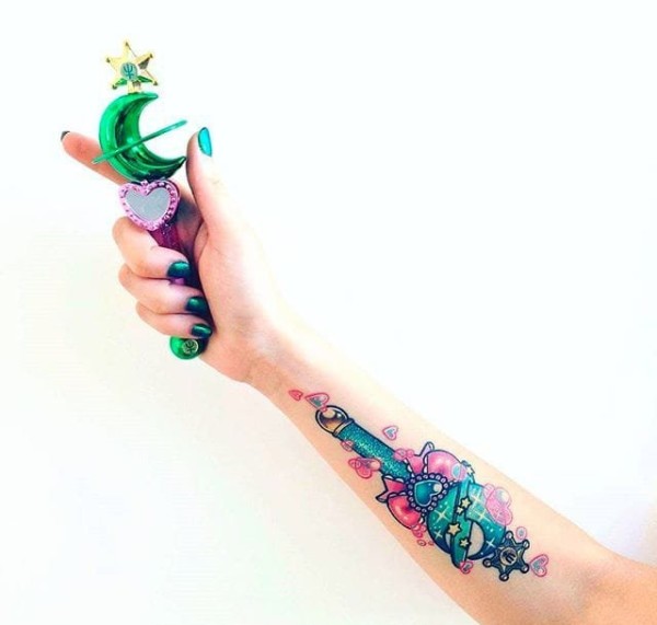 少女心爆棚的粉色魔杖纹身图案来自劳拉那齐