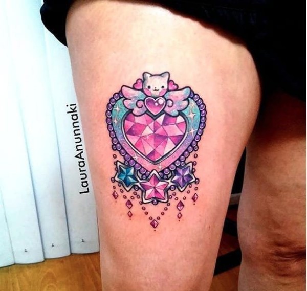 少女心爆棚的粉色魔杖纹身图案来自劳拉那齐