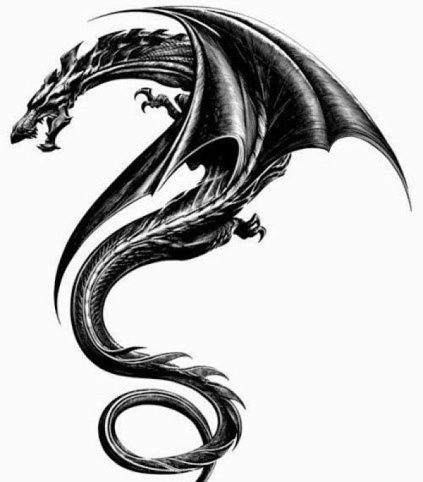 龙纹身手稿_一组老传统黑灰龙手稿纹身图案