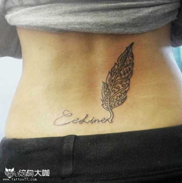 女生后腰纹身黑白灰风格抽象线条纹身图案