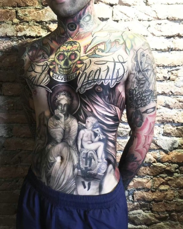 个性男生胸前眼花缭乱的图腾纹身刺青