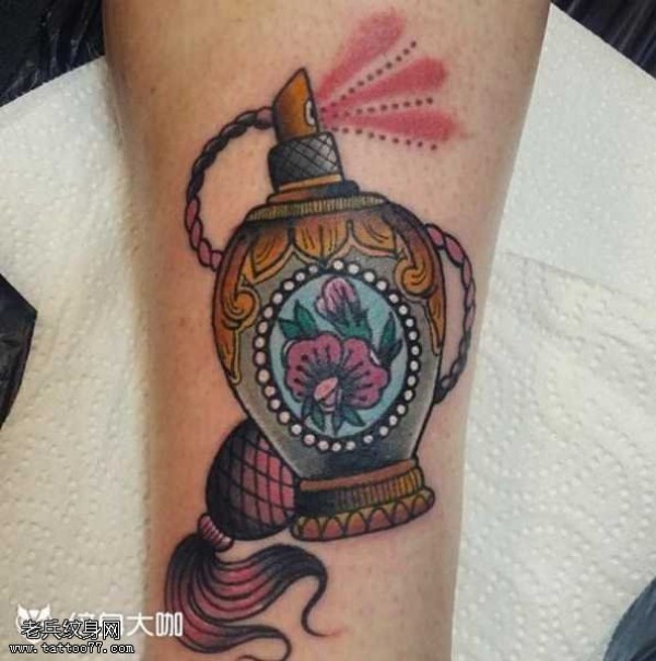 腿部香水纹身图案
