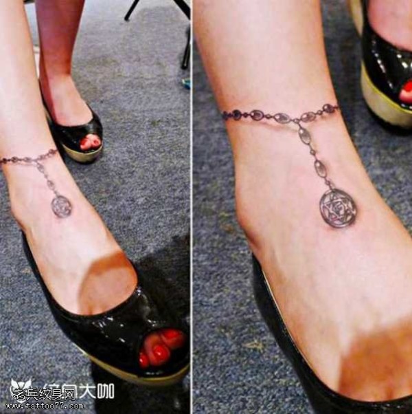 脚部链子纹身图案
