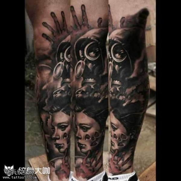 花腿纹身--一组大黑腿纹身图案作品欣赏