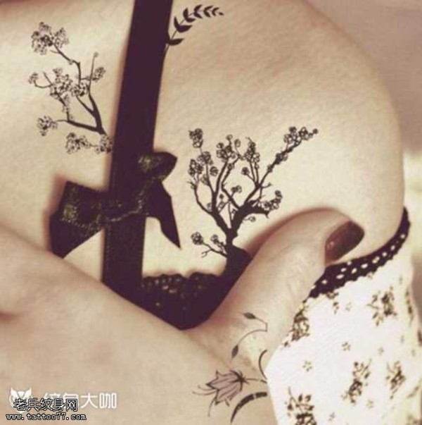 后肩唯美花藤英文图案图片_植物纹身图案大全_纹身图吧