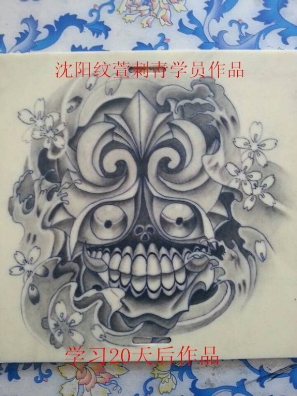 能面万媚纹身手稿_52张日式能剧面具纹身手稿图案素材欣赏