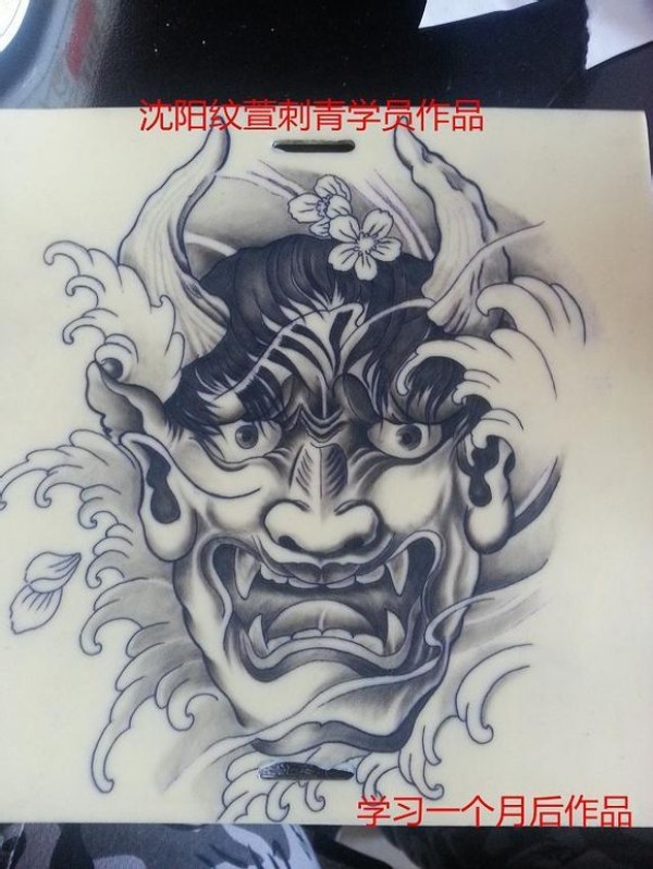 能面万媚纹身手稿_52张日式能剧面具纹身手稿图案素材欣赏