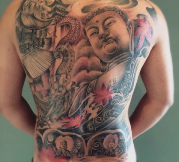 满背如来佛祖纹身图案个性威武