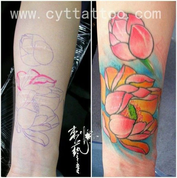手腕处疤痕遮盖的纹身效果图