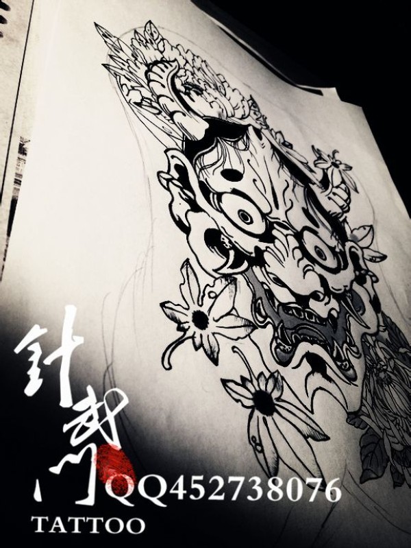 能面万媚纹身手稿_52张日式能剧面具纹身手稿图案素材欣赏