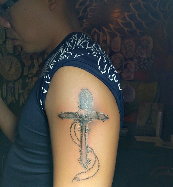 手臂十字架纹身图案很有魅力