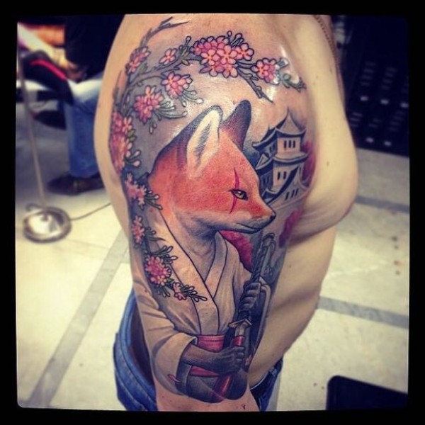 一组16张狐狸纹身手稿素材图案