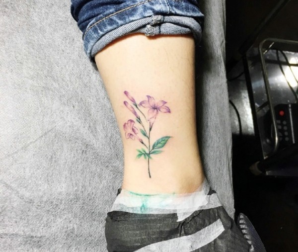 清新小桃花脚踝纹身_脚部纹身图案大全_纹身图吧
