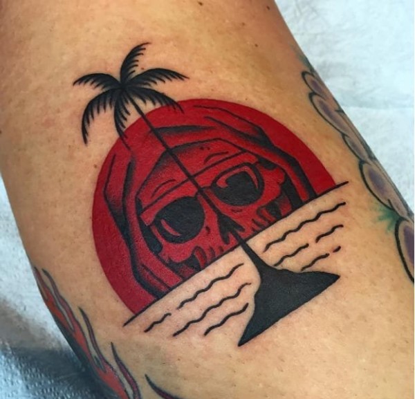 红色落日骷髅头纹身图案来自弗兰基