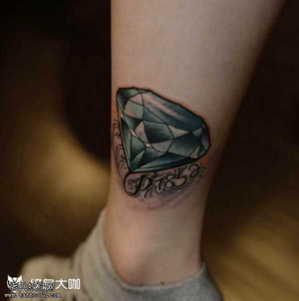 腿部钻石纹身图案