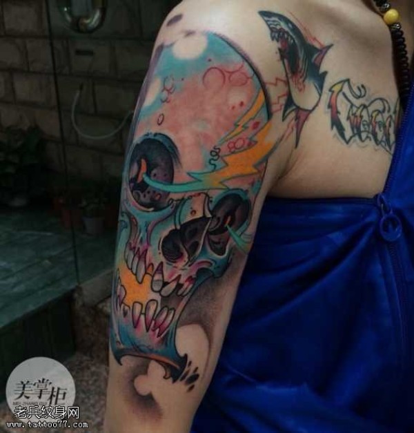 个性手臂悲伤的骷髅纹身图案图案图片_骷髅纹身图案大全_纹身图吧