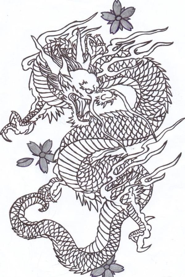 龙纹身手稿_一组老传统黑灰龙手稿纹身图案