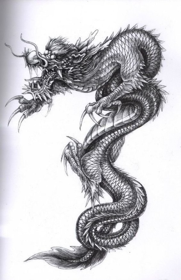 龙纹身手稿_一组老传统黑灰龙手稿纹身图案