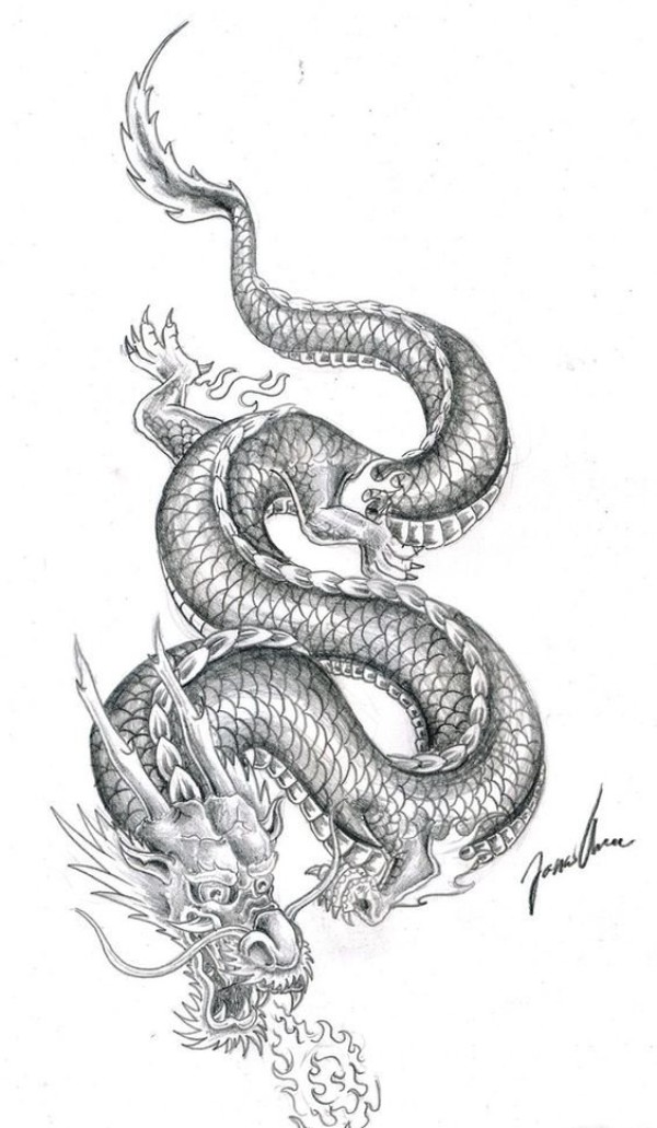 龙纹身手稿_一组老传统黑灰龙手稿纹身图案