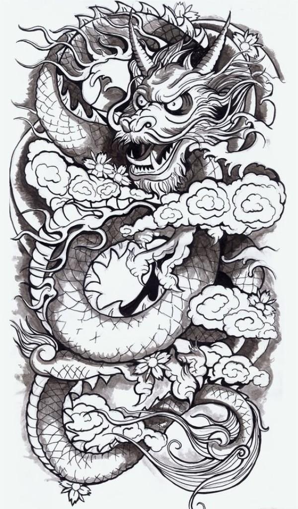 龙纹身手稿_一组老传统黑灰龙手稿纹身图案