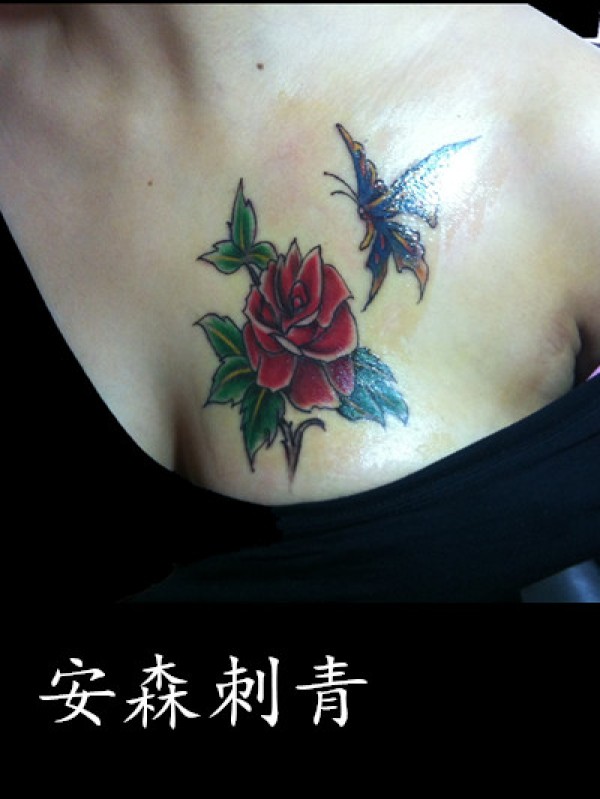 女生肩花纹身_15张女性双肩对称的肩花纹身图案作品图片
