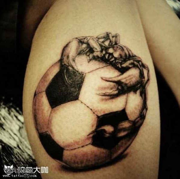腿部个性足球纹身图案