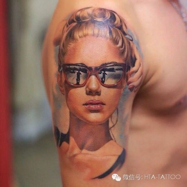 女性肩部肖像刺青_肖像纹身图案大全_纹身图吧