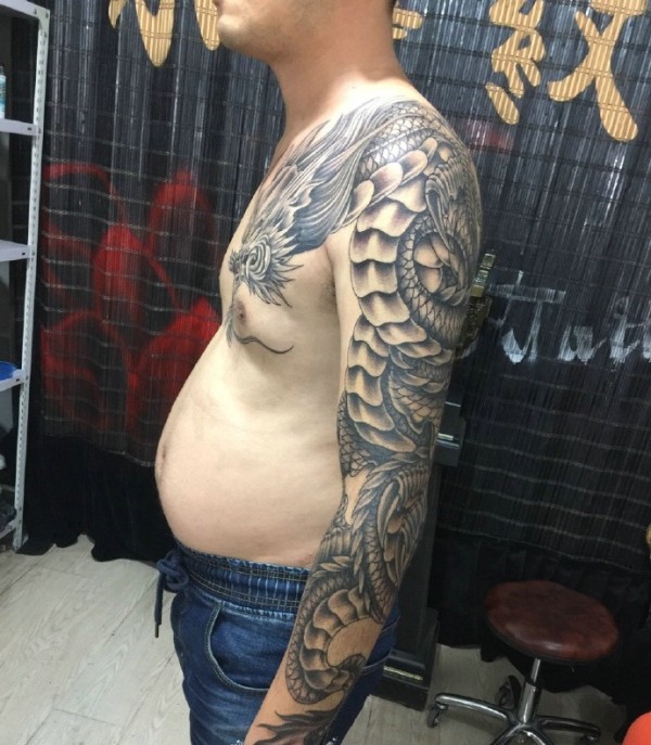 霸气过肩龙半甲纹身