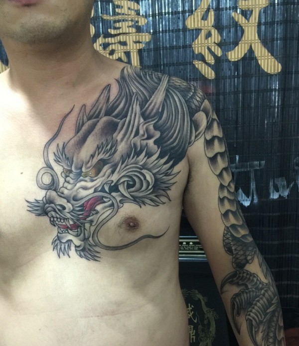 霸气过肩龙半甲纹身