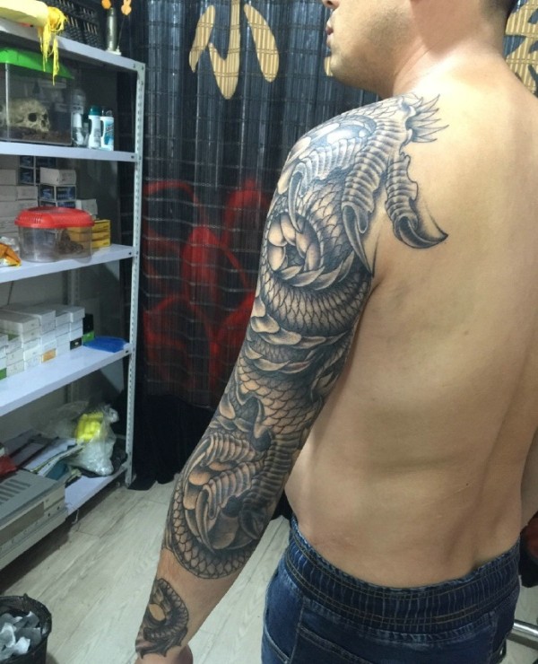 日式手彫刺青作品—半甲龙很感谢客户认可手彫刺青,手彫是日本纹身的手工雕刻技术,时间可以追溯到日本17世纪的江户时代。19世纪,手彫技术被日本黑帮挪用,被用作入会仪式,象征着从此就是江湖中人。在日式传统