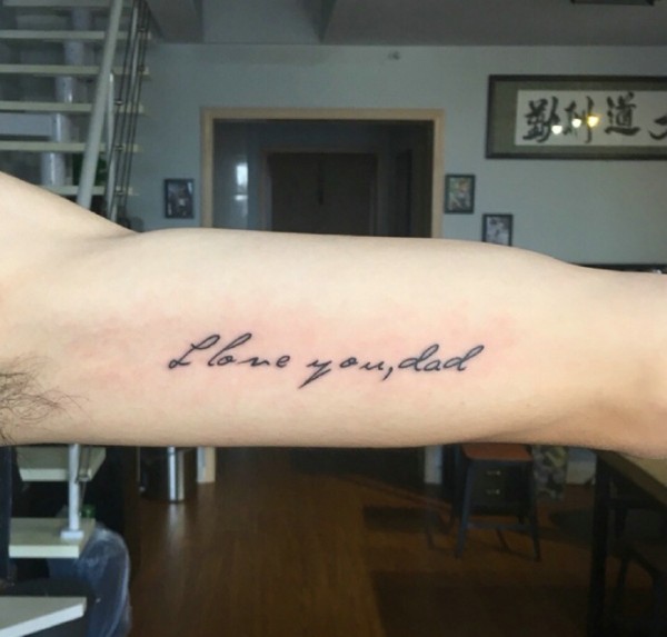 中国有嘻哈TT手臂上花体英文纹身图片