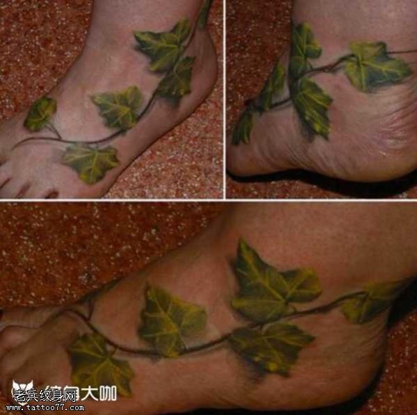 脚部叶子纹身图案