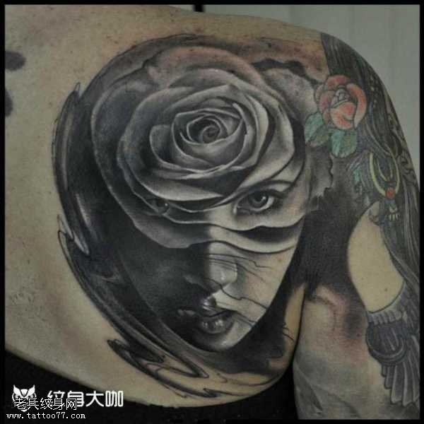 女生肩花纹身_15张女性双肩对称的肩花纹身图案作品图片