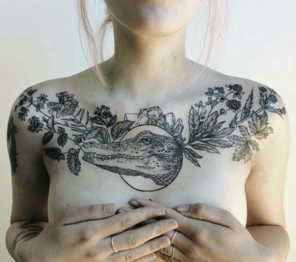 女性大花胸纹身_43张霸气漂亮的女性大花胸纹身图案作品