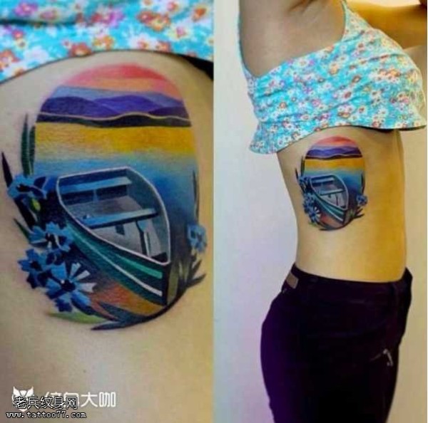 分享一款腰部时尚性感的蝶恋花纹身图案_腰部纹身图案大全_纹身图吧